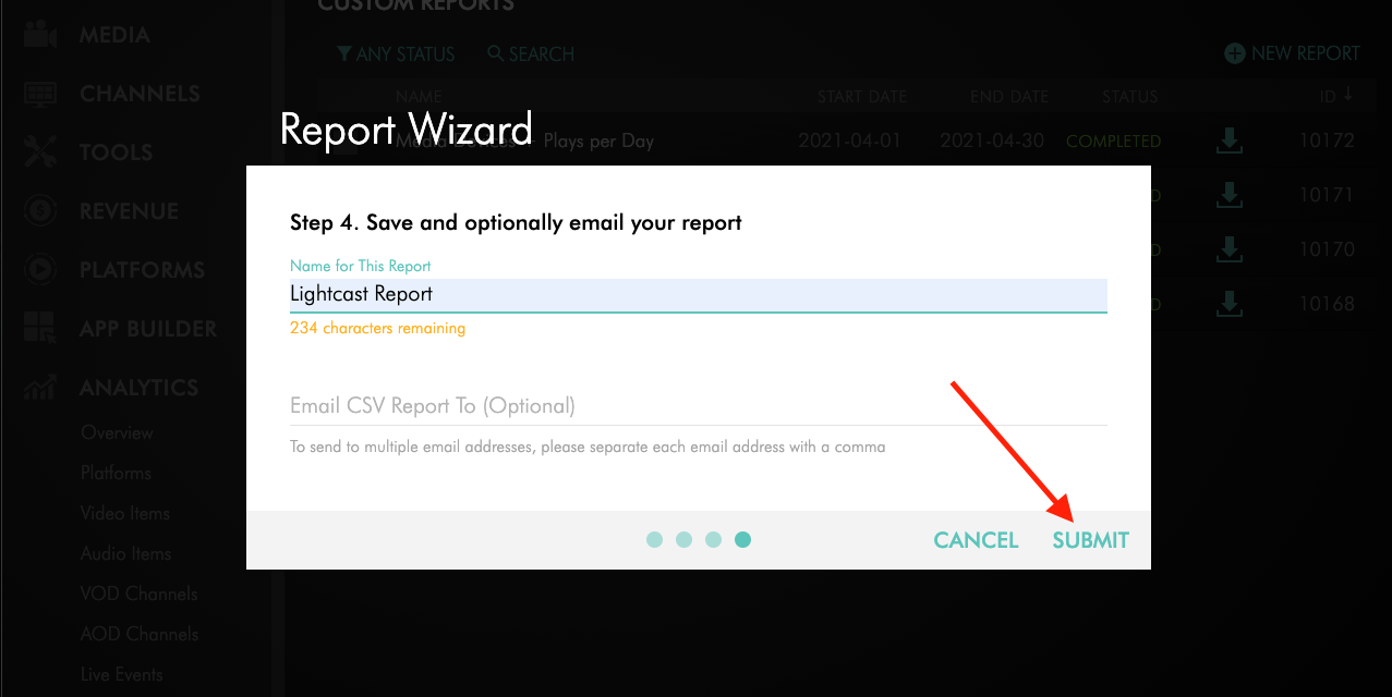 2. Once you’ve chosen the date range and data you would like to generate for your report, click on “Submit” and wait until the report has been generated. It may take a few minutes depending on the date range and data you’ve selected.