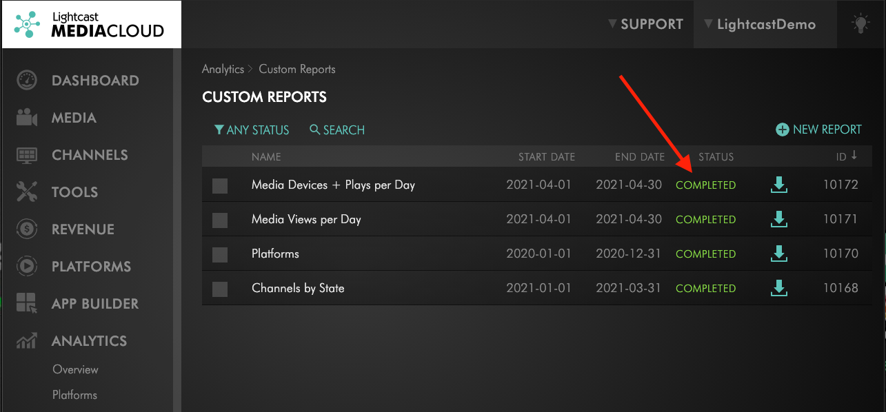 3. When the report has been generated, you will see the status of the report turned into “COMPLETED”.