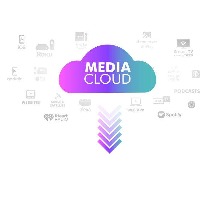 Distribute content seamlessly to websites, mobile devices, and TV platforms like Roku, Fire TV, Apple TV, Google TV, Samsung Smart TV, LG TV, Vizio, iOS, Android, Spotify, and more.